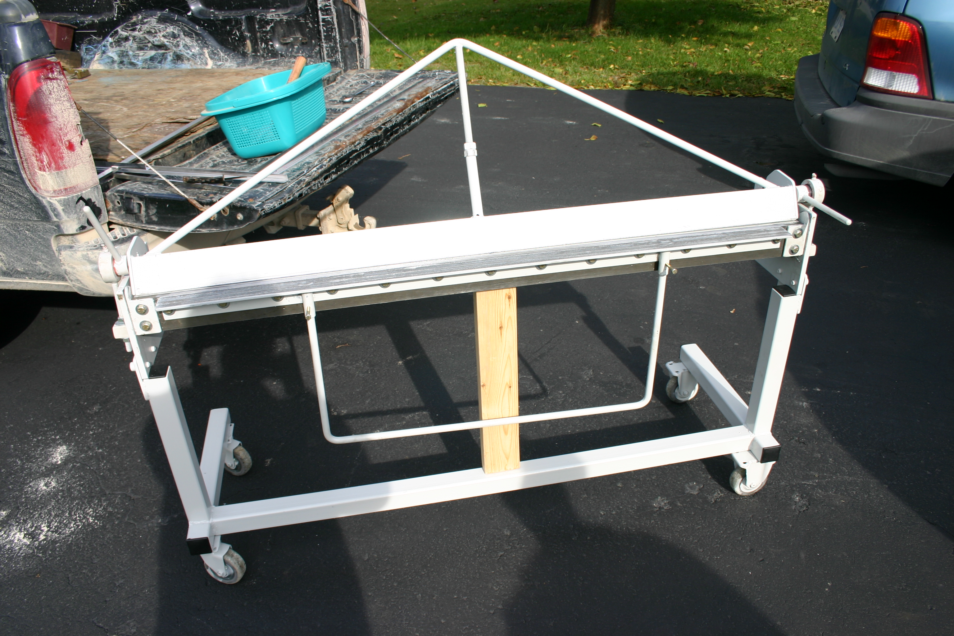 Here are the plans for the 52 inch brake that was used in the Scratch Builders DVD by www.homebuilthelp.com . This brake was built with metal from a local scrap dealer and the total cost was less then $100 dollars. The brake is capable of .040 and a full 90 degree bend without deflection. The plans are in two formats one is Adobe pdf and the other is CAD dwg format. download the version you need. I would like to Thank Herbet Heaton for taking the time to decipher my hand drawings and providing these professional drawings for you. Thanks Herbert!