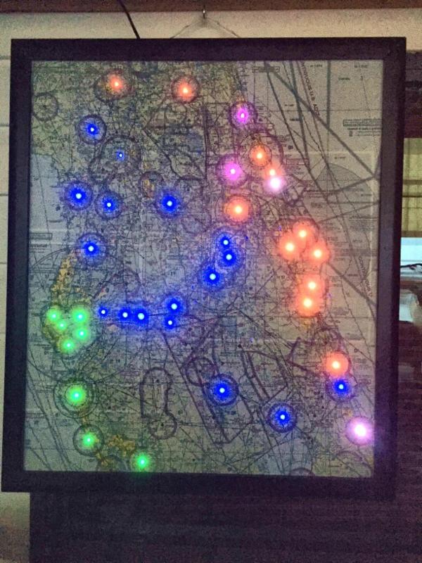 will indicate flight rule operations (VFR, MVFR, IFR, LIFR) in synch with METAR data from the National Weather service. A quick glance at this map will